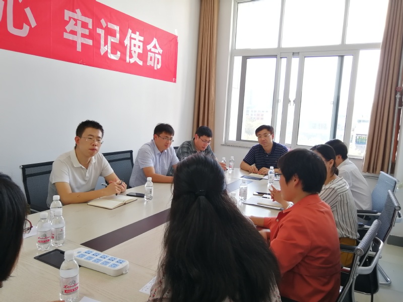 9月26日下午,结合公司“不忘初心、牢记使命”主题教育,公司党委书记冯宝鹏和公司筹备组成员康忠健与公司实验中心老师进行了调研座谈,就公司发展和实验中心如何快速融合并顺利运行问题进行调研和探讨 。