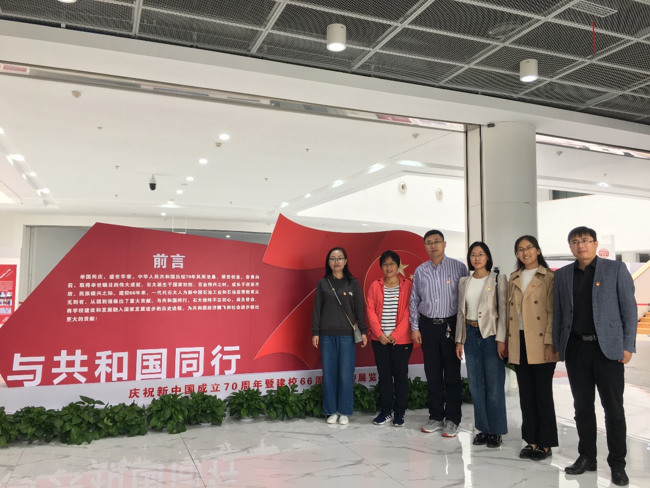 通过观看展览,了解了校史校情,深受杨光华、王启民等老一代石油人的鼓舞,汲取了宝贵的精神财富,全体党员表示,秉承老一代石油人“艰苦奋斗、实事求是”的石油精神,坚守初心、牢记使命,在世界能源转型和能源供需结构多元化趋势下,为构建“清洁低碳、安全清洁”新能源体系而努力奋斗,为实现中华民族伟大复兴的中国梦而努力奋斗。