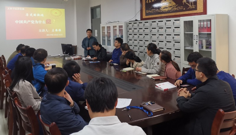 10月16日下午,根据公司“不忘初心、牢记使命”主题教育安排,XC体育党支部书记左海强以《中国共产党为什么能?》为题在工科楼E411党员之家为支部党员上专题党课。
