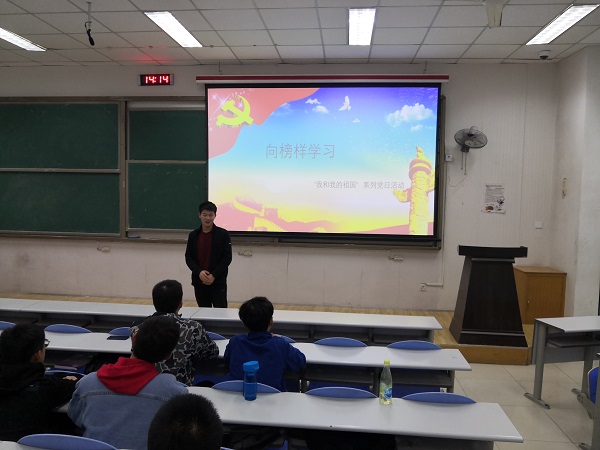 今年国庆期间有气势宏伟的阅兵仪式,有《我和我的祖国》电影,有国民对建国七十周年的美好期许。冯文创同志说到:“70年的光辉历程,国家在中国共产党的领导下,不断进步,不断发展,在今天这样一个历史节点,我们不仅仅需要珍惜当下,而且要牢记革命先烈,牢记祖国的英雄和榜样!”随后冯文创同志带领全体党员重温历史,共同探讨中国榜样人物的英雄事迹,支部成员结合国庆所思所感,纷纷阐述了自己对榜样的认识和理解。陈亚春同志说:“新中国成立以来,无数仁人志士为之努力,为之付出。铁人王进喜,工程师林致远等等,他们的奋斗精神、奉献精神值得我们学习、继承与发扬。”接下来,支部成员交流了自己对榜样的看法和认识,深受教育,表示要以英雄楷模为榜样,从自身做起,坚定自身理想信念,不忘初心,不断增强自身责任意识和使命意识,自觉在政治立场、政治方向、政治原则、政治道路上同党中央保持高度一致,做新时代的先锋模范。