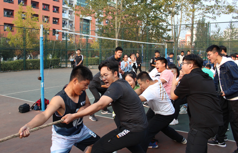 “拔河比赛,选手辛苦,我们喊口号的也不轻松。”赛场一旁的李泳祺,正在为选手们调整节奏,他表示,没有统一的节奏是不可能取胜的,“四两拨千斤,说的就是这个道理。”辅导员徐光辉全程观战,为大家加油鼓劲;各班的啦啦队也都不甘示弱,与赛场上的选手一起呐喊,力求从气势上压倒对手。