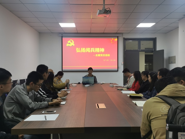 2019年10月16日,为了弘扬爱国精神,培养爱国意识,XC体育16级电气本科生第一党支部在特种楼C431开展了以弘扬阅兵精神为主题的党日活动,党支部全体党员参与了此次活动,活动由党支部书记孙传栋主持。