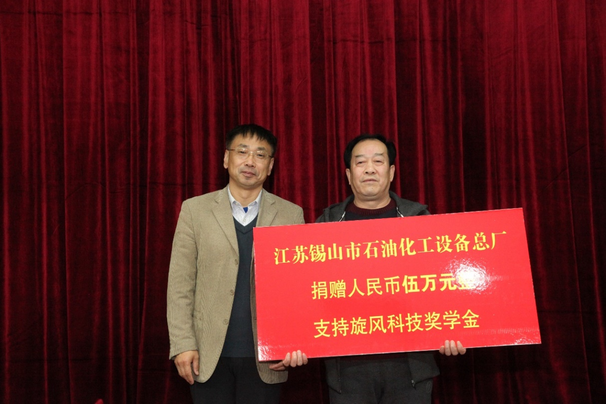 冯宝鹏接受无锡市石油化工设备有限公司捐赠 杨安摄影