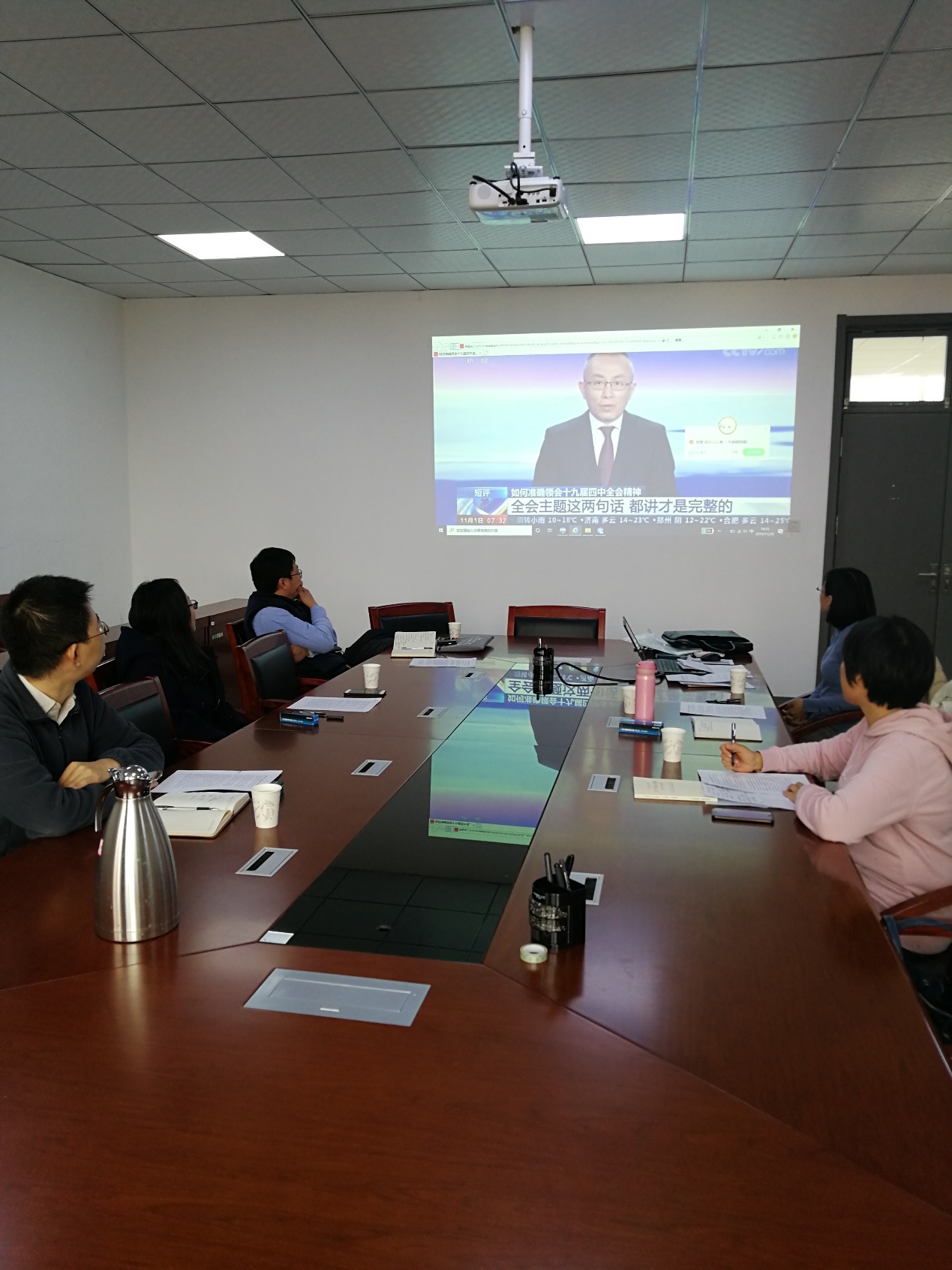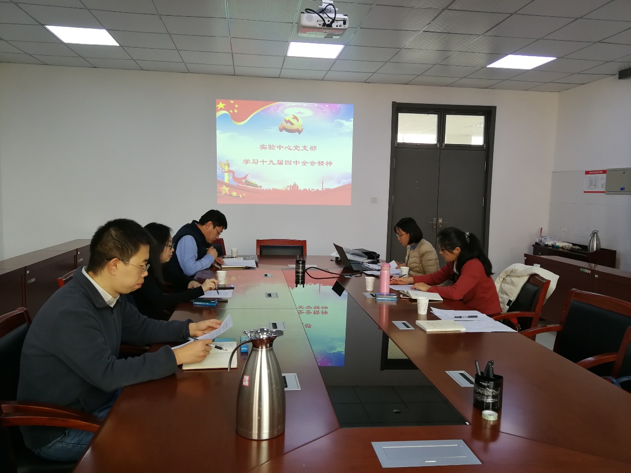 11月29日下午,根据公司“不忘初心、牢记使命”主题教育活动安排,公司实验中心党支部,在综合实验楼C433会议室召开支部会议,学习贯彻十九届四中全会精神,会议由实验中心党支部书记王丽飞同志主持。