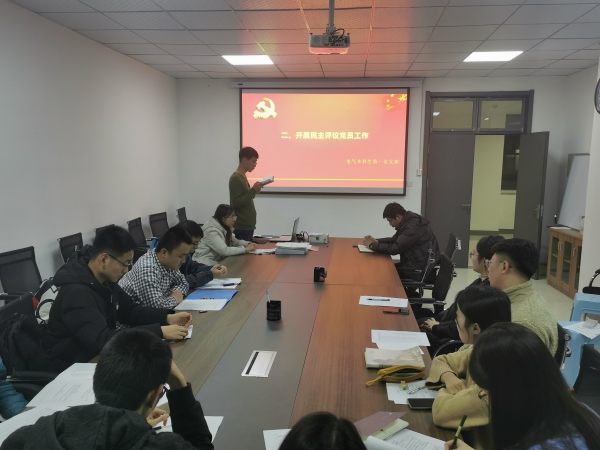 会议伊始,全体党员进行集中学习,观看十九届四中全会《决定》视频,紧密围绕学习贯彻习近平新时代中国特色社会主义思想这一主线,接受思想洗礼。随后支部开展民主评议工作,支部书记孙传栋代表支委会向党员大会述职,说明支委会的职责及成立以来开展的工作,并接受党员的评议,听取支部成员的意见。各位党员开展个人自评,列出了整改事项,作出整改承诺,支委会成员带头进行了自我批评,孙传栋同志率先发言:“作为党支部书记,我在开展支部工作时有时计划不够明确,安排欠妥当,希望大家以后对我进行监督。”接着全体党员进行了发言。根据发言情况,支部内开展互评,直截了当地指出问题和不足,各位党员填写民主测评表,对支部成员进行无记名投票测评。最后,辅导员老师穆海涛对专题组织生活会和民主评议工作情况进行了点评。