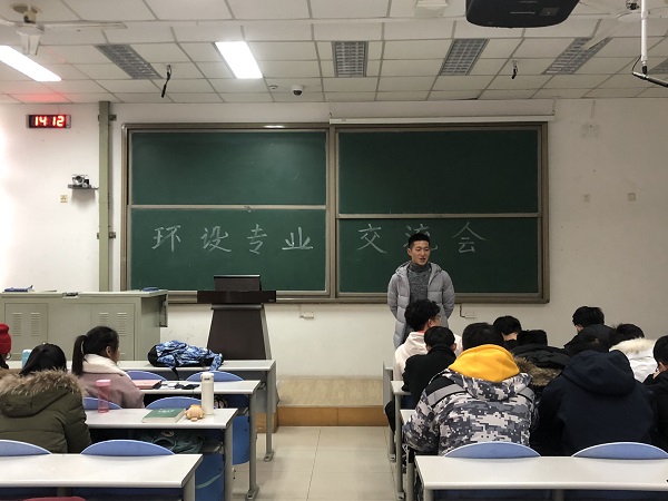 交流会由环设1801班长杨家铭主持。活动伊始,杨家铭对环设2019级新生表示欢迎,交流会就此拉开帷幕。为给新生们全面而详细地分享大学一年来的经验及收获,杨家铭邀请了环设1801的张钧、王玉、李阳和朱永强等优秀员工分享他们在各自专长领域的经验。张钧作为环设2018级中全面发展的优秀代表,向新生们分享了自己在学习、科研、支教等方面的经历,鼓励新生要有钻研精神,将时间资本充分利用,不断丰富自己。王玉、李阳、朱永强则从团支部建设、志愿服务、日常生活等方面向新生分享了建议,让新生们对老员工活的各个方面都有了初步的认识,方便新生更快更准确的找到自己在大学的定位,对老员工活有合理的规划。