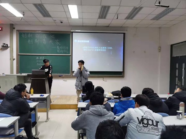 正值第二十八届老员工科技节,为引导广大青年团员投身“大众创业,万众创新”的时代潮流,能源与动力工程2018级四班团支部,能源与动力工程2019级二班团支部在南堂216教室共同举办“创新你我他,创业靠大家”主题团日活动。活动由能动1804团支书张钰淇和能动1902团支书王恩礼共同主持,两个班全体团员参加活动。