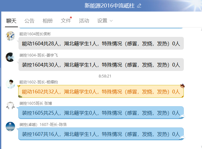 公司师生主动发起“爱心捐款”活动,共筹捐款六万余元,医用物品价值千余元等。截至目前,捐款及捐赠医用物品均已落实到位。此外,公司四个年级、多名员工积极参与到家乡防控疫情的志愿服务之中。他们之中有的在家乡小区逐户排查返乡情况、宣传防疫知识,有的在村镇及小区入口站岗值班禁止人员出入,有的参加家乡志愿者队伍慰问村中孤寡老人,还有的留校成为公司宿舍管理员,为公司防控疫情做出自己的贡献。