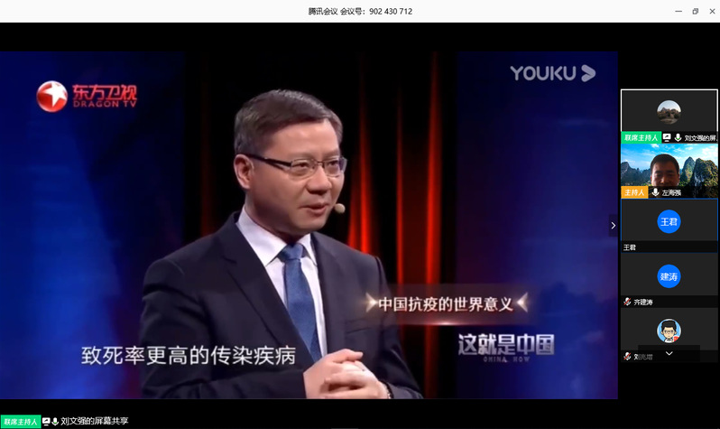 接下来,值月党员刘文强主讲新冠肺炎疫情防控专题微党课,微党课从国家在疫情防控方面的主要工作、当前加强疫情防控重点工作、统筹推进疫情防控和经济社会发展工作、加强党对统筹推进疫情防控和经济社会发展工作的领导、进一步做好在线公司产品、扎实做好高校开学准备工作、抓好年度教育重点工作等七个方面进行了讲解,最后带领支部全体成员共同视频学习了张维为教授“中国抗疫的世界意义”讲座。