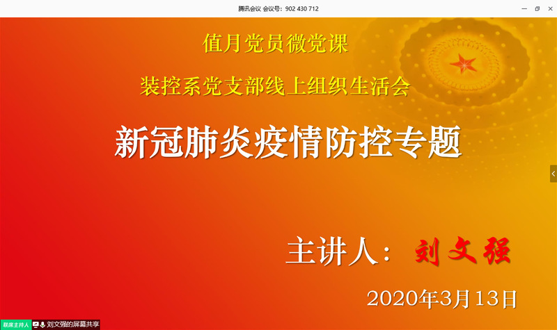 值月党员刘文强主讲新冠肺炎疫情防控专题微党课