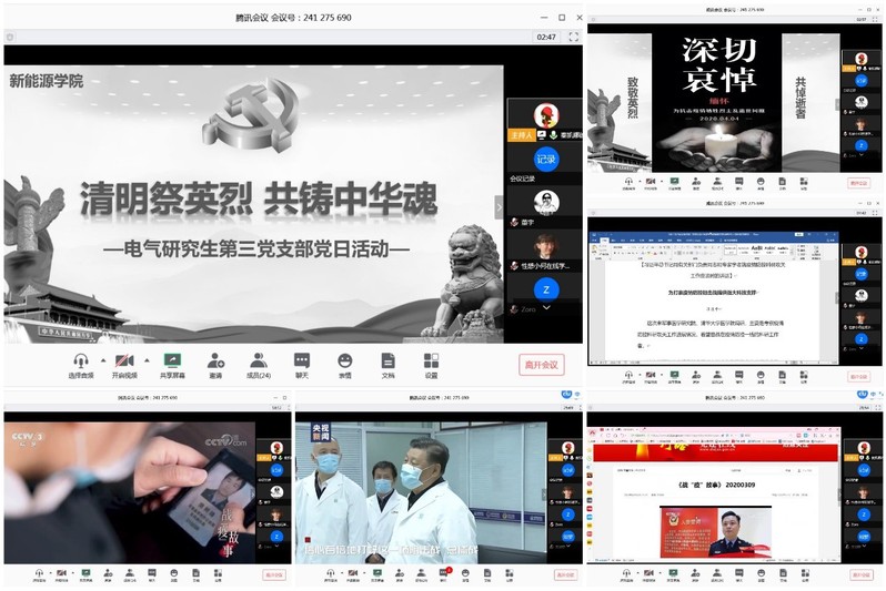 默哀后各支部党员通过讲述红色故事、重温入党誓词、网上云祭扫等不同形式开展英烈事迹学习活动,深刻缅怀新冠肺炎期间为抗击疫情用生命守住人民健康安全底线的平凡英雄们。其中,电气本科生第一党支部、能动研究生第二党支部等在线上开展了学习抗疫英雄事迹的视频和网上云祭扫的活动,能动本科生第二党支部、电气本科生第二党支部、装控本科生第三党支部、员工会党支部等纷纷对英烈们的英勇表现发表感受与悼词,表达深刻悼念之情。XC体育员工党总支要求全体党员学习抗疫精神,狠抓工作落实、增强忧患意识、提高工作本领,并引导各支部成员崇尚英雄、捍卫英雄、学习英雄、关爱英雄,铭记革命英烈光荣事迹,增强使命感和爱国主义情感,用实际行动诠释和践行共产党人的初心和使命,为实现“两个一百年”奋斗目标、实现中华民族伟大复兴的中国梦而努力奋斗。各支部党员们均承诺用实际行动向英雄致敬,发挥先锋模范作用,积极投身防疫志愿工作,尽己所能为防疫工作贡献力量。