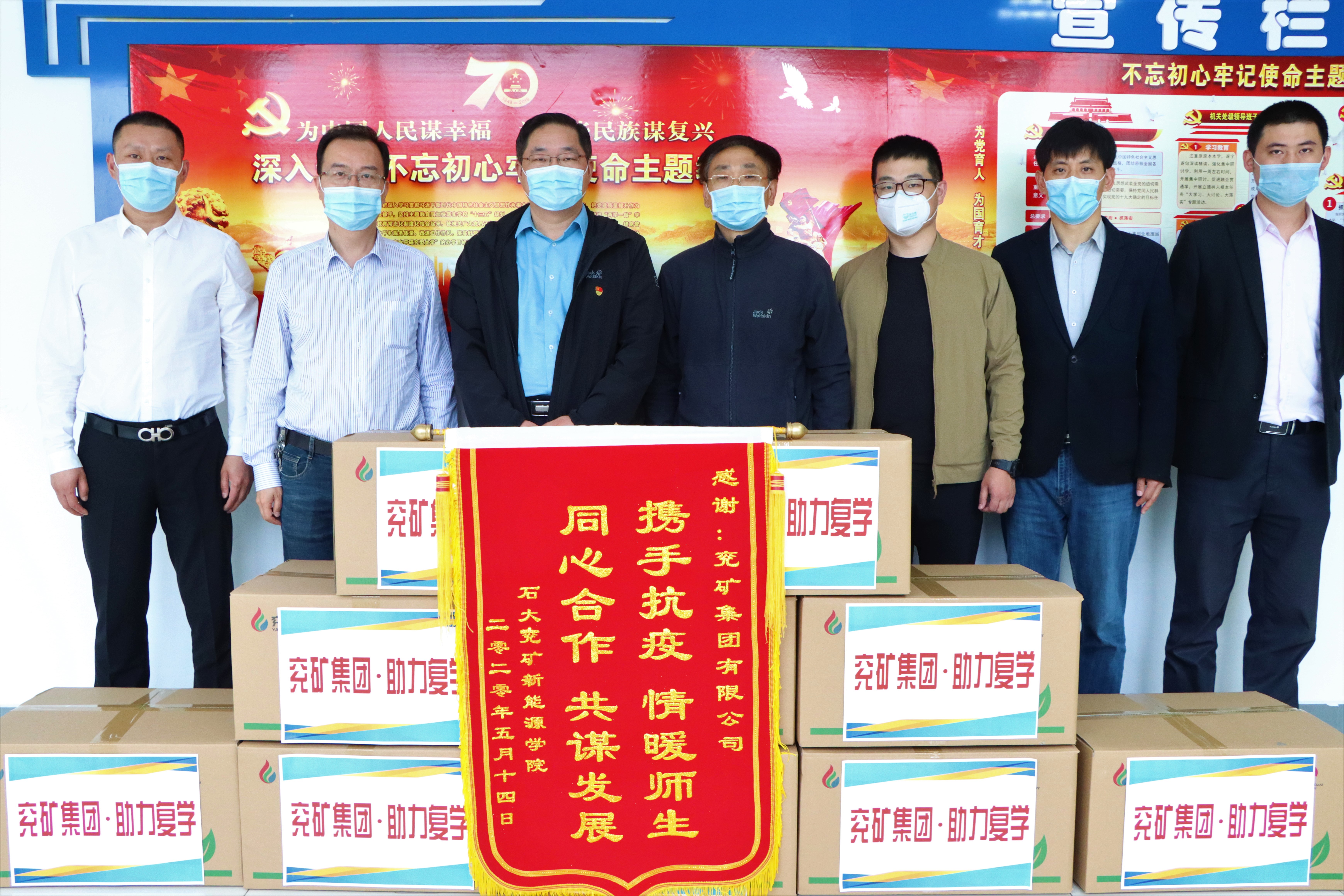 5月14日,兖矿集团有限公司相关部门一行4人来到公司,代表兖矿集团有限公司向公司捐赠了20000支一次性防护口罩,助力公司复学工作。公司党委书记冯宝鹏,公司办公室及员工工作有关人员代表公司接受了捐赠。