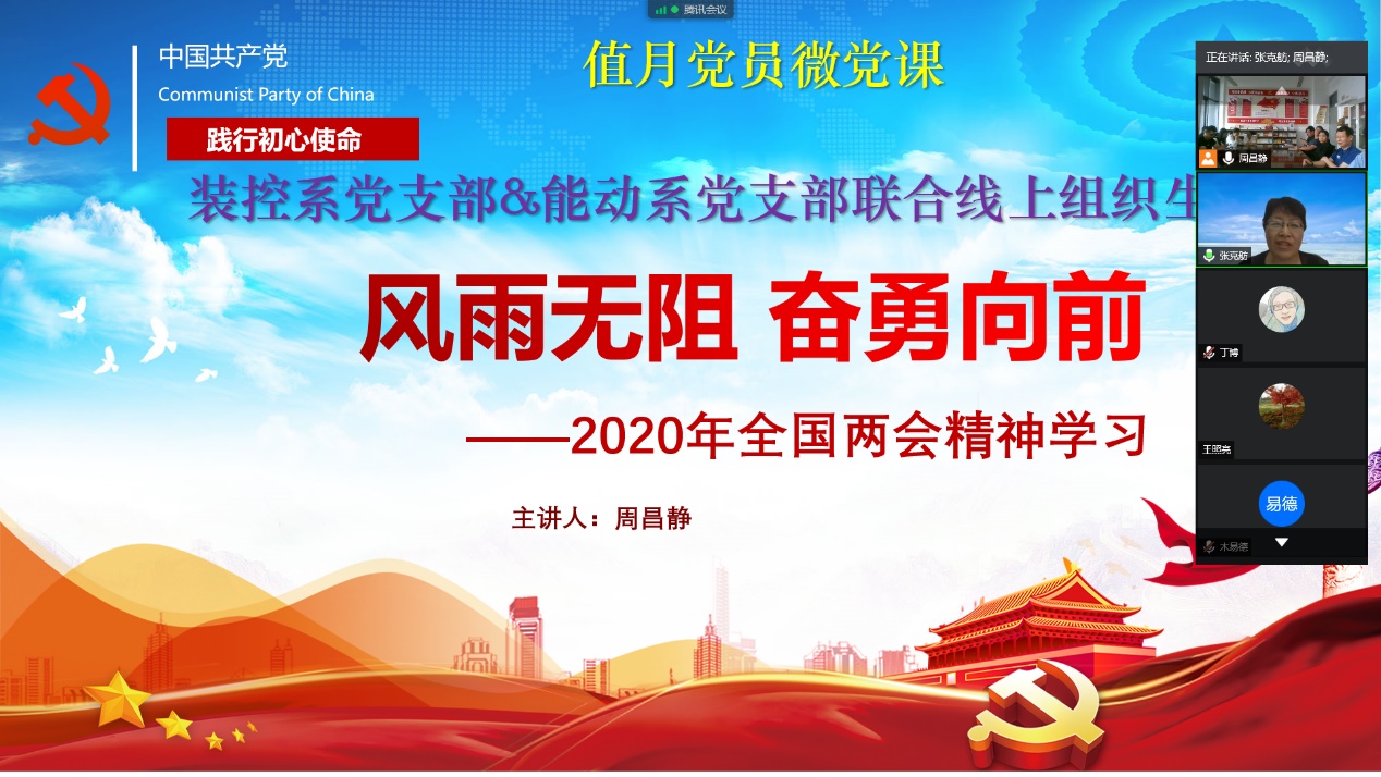 2020年6月24日,XC体育党支部和XC体育党支部联合开展了线上组织生活,会议由XC体育支部书记左海强和XC体育支部书记张克舫同志共同主持。左海强书记首先介绍了XC体育开展的值月党员制度,之后由XC体育本月值月党员周昌静同志主讲以 “风雨无阻,奋勇向前-2020年全国两会精神学习”为题的微党课。XC体育和XC体育全体党员参加了会议。XC体育部分党员在工科楼E411党员之家现场参加了会议。