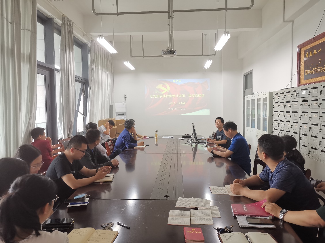支部书记左海强主讲以“让党旗在防控疫情斗争第一线高高飘扬”为题的微党课