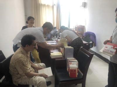 7月10日下午,预定的16:00还没有到,徐明海、杨德伟、王照亮、丁鹏、段欣悦、张秀霞老师就来到工科楼D221来领书(每个党员1本指定,1本自选),其他老师也陆续来挑选了自己喜欢的书籍,利用暑假期时间加强党员理论学习,认真学习“中国共产党党史、新中国史、改革开放史、社会主义发展史及新冠肺炎疫情防控知识”,为开学后的知识竞赛做准备。更重要的是,通过读书学习进一步深化抗疫认识,坚定理想信念,传承红色基因,激发爱国力行,做到今昔对照、融汇贯通。