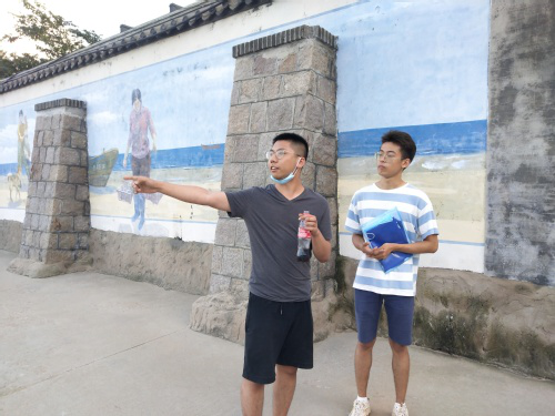 调研首日,实践队员以青山渔村经济文化发展现状为基点进行调研,从当地居民与游客双向开展深入交流,通过同民宿老板林先生就青山渔村传统文化、旅游发展、渔民生计等方面展开探讨得知:“青山渔村有很多传统习俗流传至今,例如尊家训,祭祖等,但很多传统文化是不被人们重视的,当然这也和村民文化意识薄弱,文化自觉性不足有关。”走访过程中,队员了解到村落传统文化气息浓厚,文化资源众多,其中保留有宗祠、石磨、清朝年间古建筑等,文化产业发展前景广阔,同时青山渔村文化宣传方式多样,包含文化宣传栏、壁画、展览馆等,但文化产业发展特征并不明显。“缺乏系统的文旅产业链,渔村传统文化与经济发展之间的契合度依旧不足,未能给人直观的文化冲击感。”当地游客如是说。