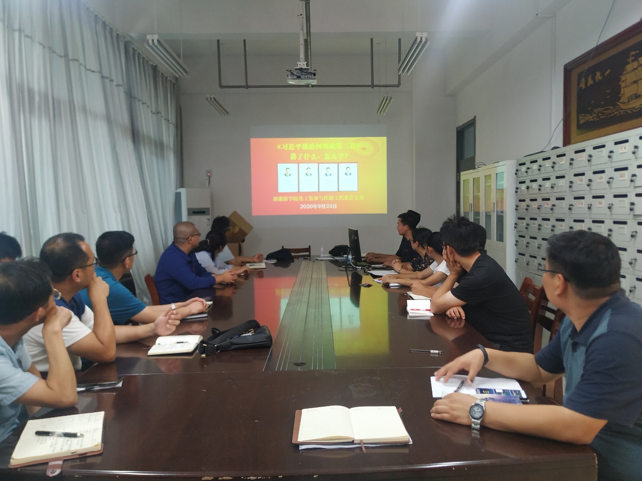 学习教育活动第二项内容支部集体学习《习近平谈治国理政第三卷》和《习近平总书记教育重要论述讲义》,针对两部著作具体讲了什么?怎么学?进行了讲解,要求全体党员同志将两部著作为思想政治学习的重要教材,深刻掌握其中的科学内涵、核心要义及精神实质,准确把握习近平新时代中国特色社会主义思想,特别是关于改革开放、关于教育优先发展、关于人才工作等方面重要论述的精髓要义,进一步深化对教育改革、教育开放、教育创新的认识。