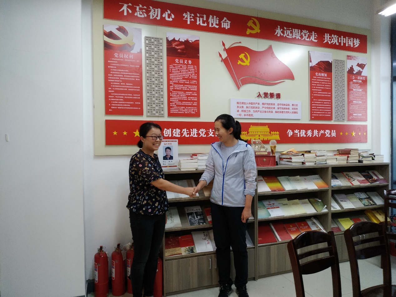 学习教育活动最后,本月值月党员曲燕同志和下月值月党员张兰同志进行了交接。