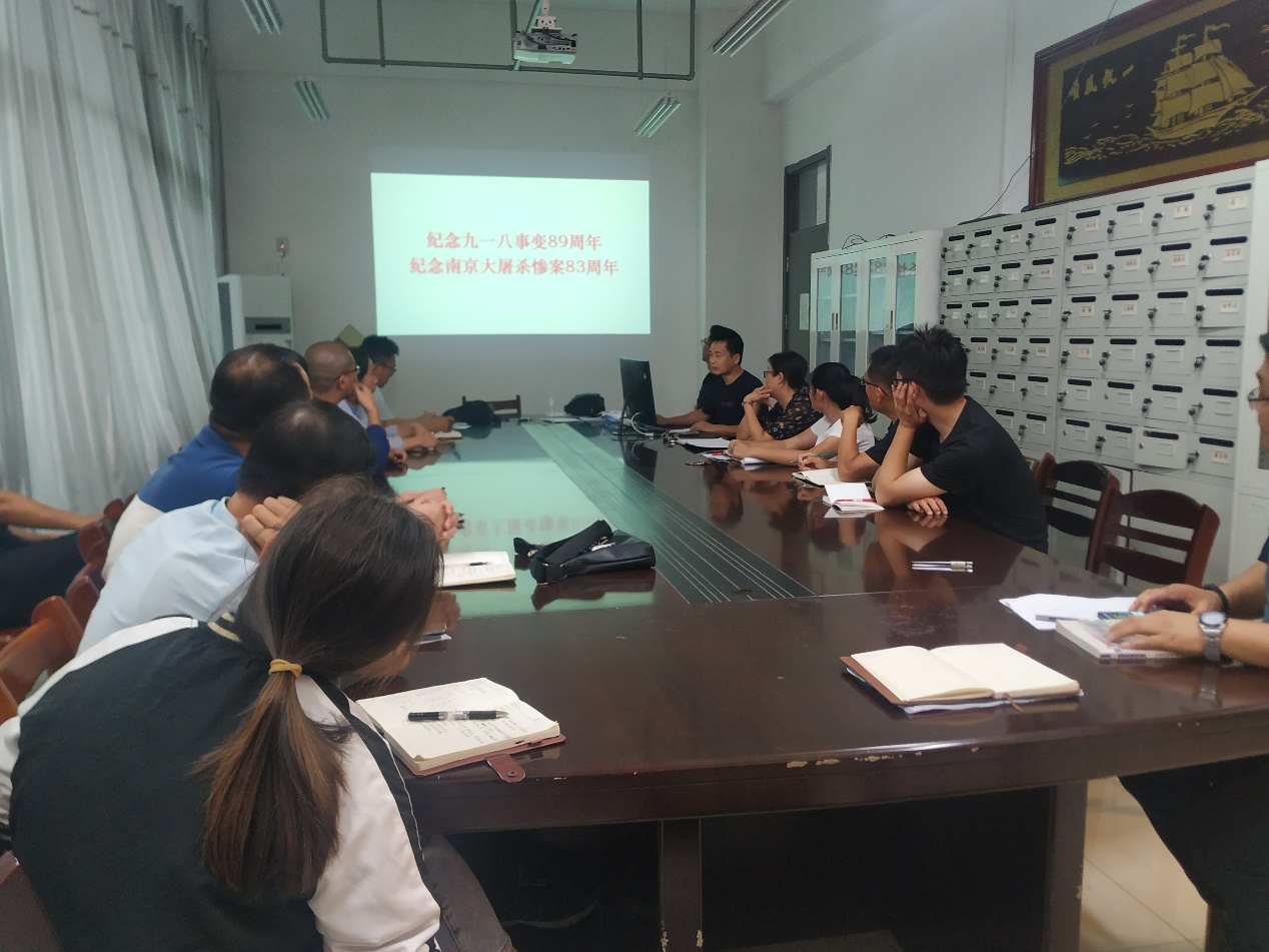 学习教育活动第一项内容是进行中国人民抗日战争暨世界反法西斯战争胜利75周年纪念活动,左海强带领全体党员同志集体收看了9月3日中共中央、国务院、中央军委举行的向抗战烈士敬献花篮仪式和纪念中国人民抗日战争暨世界反法西斯战争胜利75周年座谈会视频内容,认真学习了习近平总书记重要讲话精神,同时隆重纪念九一八事变89周年和南京大屠杀惨案83周年。