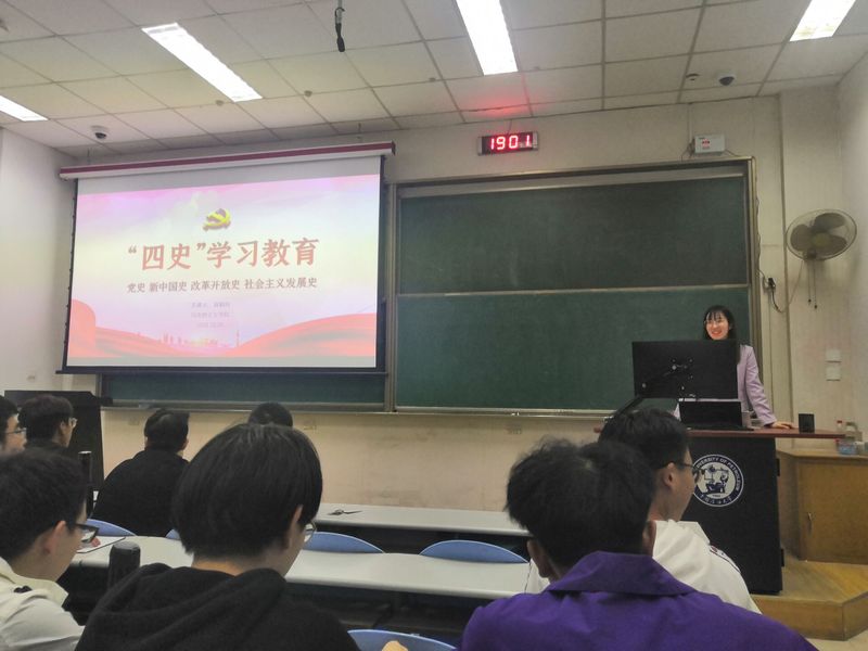 活动开始之前,三个团支部的团员选取了四史中的重要节点以及具有里程碑意义的事件进行情景再现完成配音。活动伊始,马克思主义公司研2019级员工党支部书记兼星火宣讲团成员袁明月进行了“‘四史’学习教育”的宣讲,袁明月分别针对党史、新中国史、改革开放史、社会主义发展史进行了详细讲解,她强调:“历史是最好的教科书,历史更是好的营养剂”。随后,肖寒冰播放前期收集的配音作品,全体团员举手抢答配音作品中的人物、历史事件或者事件地点等。活动最后是“四史”知识问答环节,三个团支部轮流回答问题并进行计分统计,电气1806团支部以最高分获得冠军。