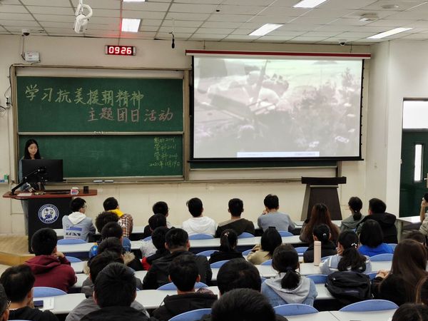 活动伊始,三个班级全体员工合唱《光荣啊,中国共青团》并观看短视频《纪念抗美援朝七十周年——致敬最可爱的人》,紧接着,由管科2004班郑明月向全体员工讲述了抗美援朝简介,其中,她着重分析了第一次战役至第五次战役及其战略图、正式停战的相关情况与历史意义。随后,四名代表依次讲述了解秀梅、曹玉海、杨根思、邱少云、胡修道五名英雄的抗美援朝事迹,并带领员工一起朗诵,加深员工对英雄伟人的认识。活动结束后,能动2001班商清源表示:“抗美援朝精神是祖国和人民利益高于一切、为了祖国和民族的尊严而奋不顾身的爱国主义精神,英勇顽强、舍生忘死的革命英雄主义精神,为了人类和平与正义事业而奋斗的国际主义精神,是一种非常宝贵的民族精神,体现了中华民族的传统美德,我一定会好好学习,发扬这种精神。”