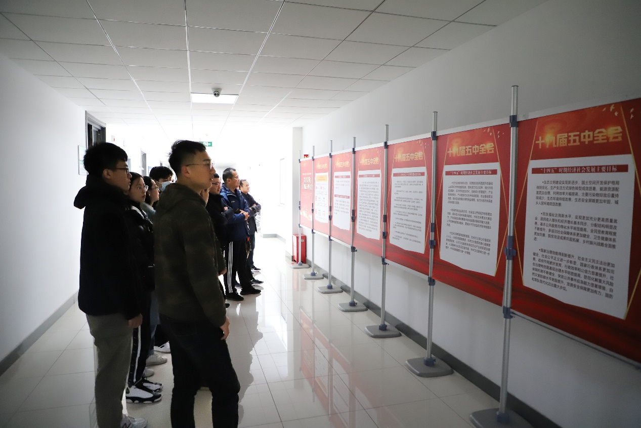 公司师生通过展板学习党的十九届五中全会精神
