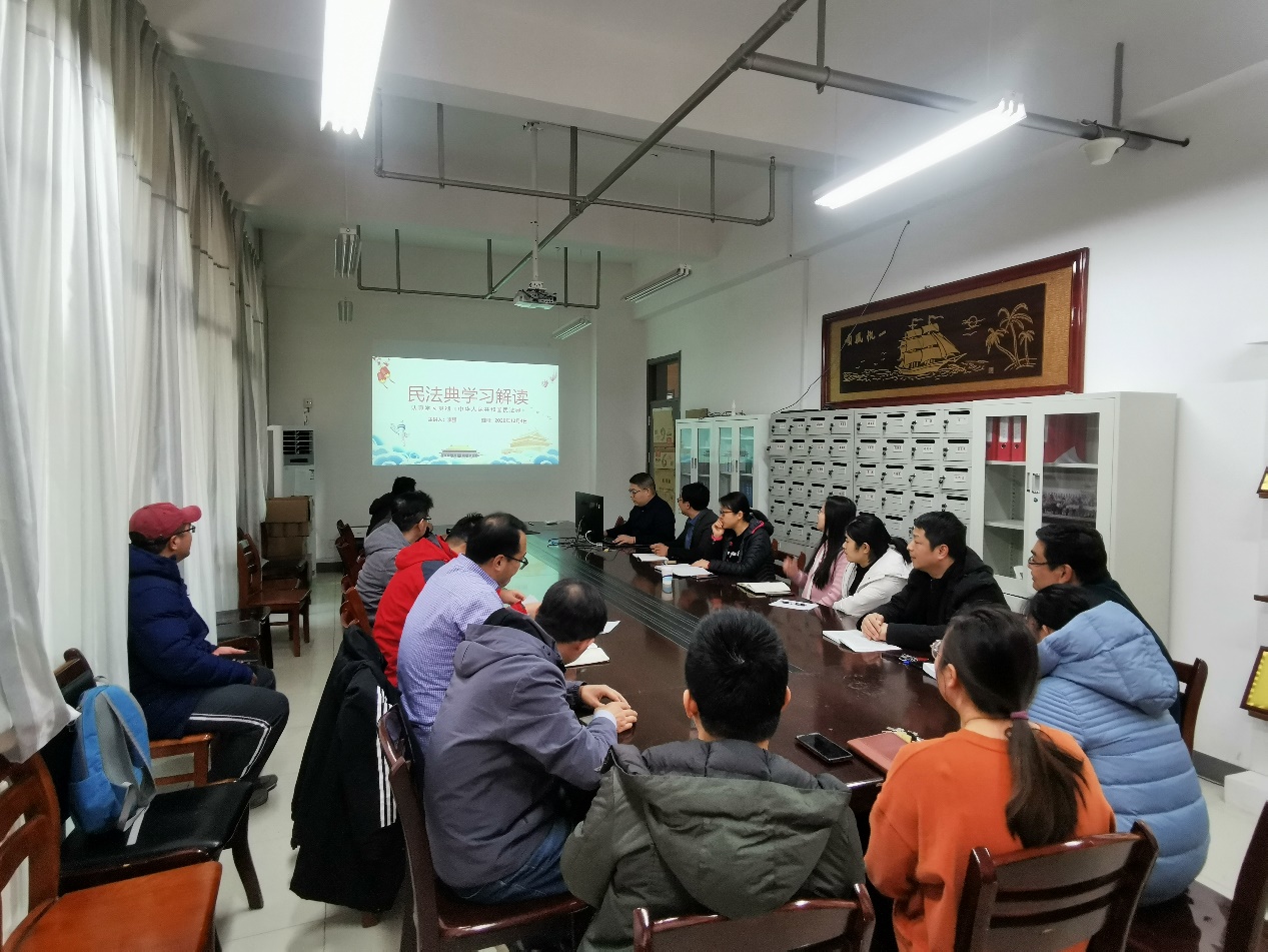 接下来,为引导全体支部党员知法、守法、懂法、用法,李强对《中华人民共和国民法典》进行了解读,从编篡民法典的重大意义、编篡民法典的总体要求和基本原则、民法典的主要内容以及与你相关的民法典问题及解答等四个方面进行了全面介绍。民法典以保护民事权利为出发点和落脚点,切实回应人民的法治需求,满足人民日益增长的生活需要,充分实现好、维护好、发展好最广大人民的根本利益,使民法典成为新时代保护人民民事权利的好法典。