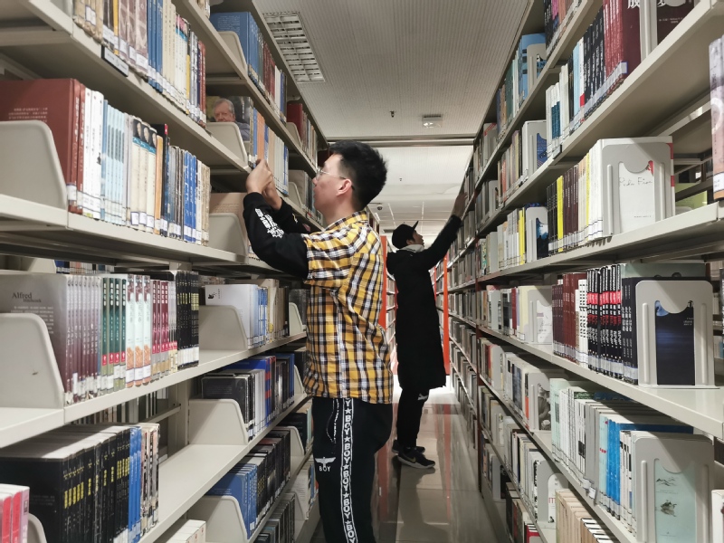 下午四点,能动1902全体团员准时来到图书馆,团支部书记王恩礼将全体团员分成两组,并确定组长,分别在一楼文艺书库和二楼社科书库整理图书。首先,在图书馆管理人员的解说下,员工了解每一项任务的具体操作流程,明确自己的任务,有条不紊地开展志愿服务活动,在每一组中,由三名员工负责借书区还书书目的整理和将书上架的工作。其中排书并整理错书是一项脑力活动兼体力活动的工作,志愿者们不仅要熟悉书架的位置和书目的排列规则,还需及时地发现错书并归放到其正确位置。面对种类繁多的书目,有志愿者说道“这样的工作真的很繁琐,有时对于一本书的摆放转了好几圈都找不到正确的位置。”站起,蹲下,又站起,行走,蹲下,志愿者们仍旧耐心做好一切工作。在整理图书的过程中,志愿者们十分注意自己的言行,小声交流,彼此间配合默契,整理图书时轻拿轻放,尽自己所能维持安静的阅读氛围,不打扰读者们的阅读和学习。经过两个小时的整理,原先错位的图书被摆放在正确的位置,几乎所有文艺书库和社科书库的图书整齐摆放在相应位置。志愿者马新宇表示“我体会到了图书馆工作人员整理的辛苦与不易,所幸我从中学到了一些图书管理的知识。”