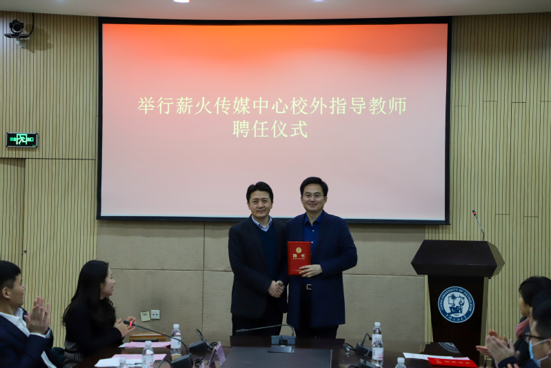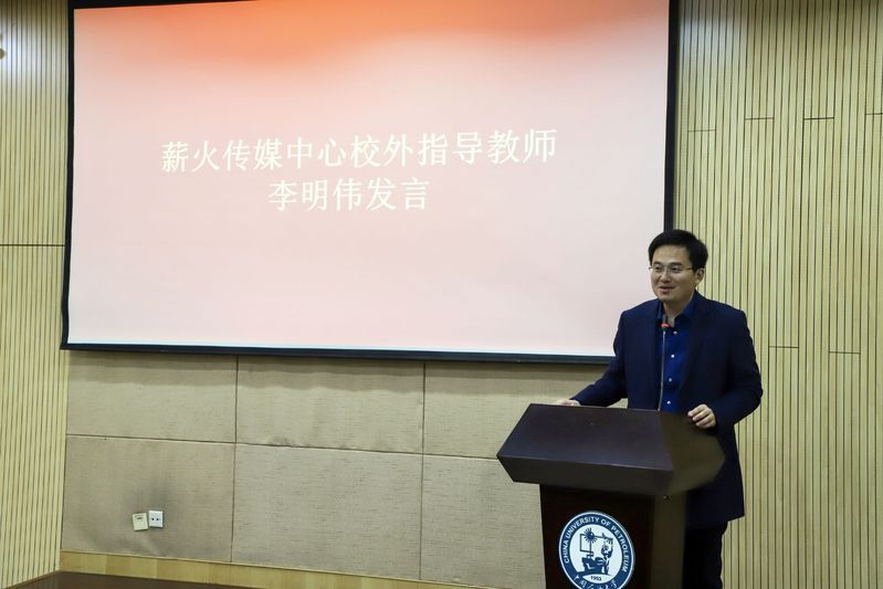 吴明铂为李明伟颁发聘书,聘任其担任薪火传媒中心校外指导教师。李明伟在随后的发言中表示了对公司的的感谢、对宣传工作的肯定,并提出在今后的工作中,定会为XC体育的新闻宣传建设和员工的发展等方面提供全力的支持、帮助和配合,为公司的发展贡献一份力量。