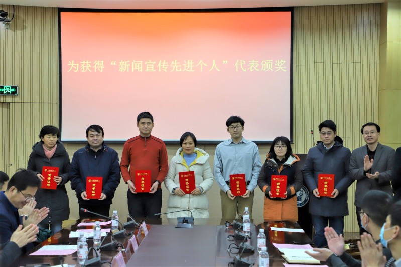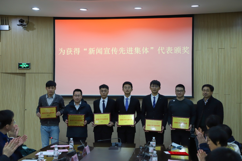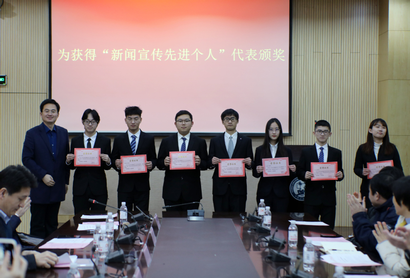 吴明铂宣读《XC体育关于表彰2019-2020年度新闻宣传先进集体及个人的决定》。李明伟和刘积舜为获得“新闻宣传先进个人”的师生代表颁奖;吴明铂为获得“新闻宣传突出贡献奖”的师生颁奖;冯宝鹏为获得“新闻宣传先进集体”的院系单位和员工组织颁奖。