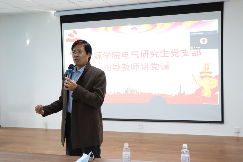 郭杰为电气研究生党支部党建指导教师颁发聘书,并针对电气研究生支部今后党建工作提出意见,希望通过聘任党支部指导教师进一步加强教工支部与研究生支部的联系,将党建与科研相结合,拓展创新党建工作内容。同时他鼓励各支部在指导教师的引领下,切实抓好支部建设,特别是党员队伍建设、干部队伍建设,充分发挥纵向党支部的优势,借助指导教师的力量,想方设法调动支部成员积极性,不断提升本支部党建工作科学化水平。