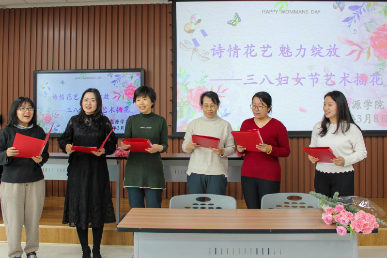活动伊始,党委书记冯宝鹏发表了讲话,肯定了XC体育自成立以来33位女教师做出的巨大贡献,并对广大女同胞送去祝福。接下来各代表队分别进行了表演:来自院机关、实验中心、过程装备与控制工程专业、电气工程及其自动化专业的全体女教工分别表演了诗词朗诵《春天在哪里》、《春天来了》、《从三月里款款走来的女子》以及《大海的诗行》,用朗诵表达了女子对自身美好的赞美、对自身价值的肯定;随后,来自能源与动力工程的路畅表演了歌曲独唱《大鱼》。各代表完成表演后,主办方请到了新百味的花艺师,对到场的女教工进行花艺指导。在花艺师的讲解下每位女教工都开始了自己的创作,最后获得了一提提精美的花篮。她们互相赞赏和借鉴,并与这些花篮合影。