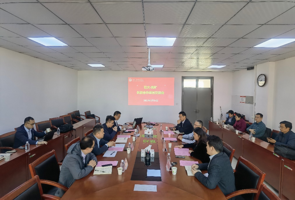 3月24日,石大-兖矿科技合作项目交流会在石大兖矿XC体育顺利召开,山东能源集团副总工程师、公司企方经理安满林,山东能源集团技术总院高级业务主管邓雪祥,原兖矿集团新能源事业部副总经理邢涛,原兖矿集团新能源事业部业务主办张奎同到访并出席交流会,公司科技处处长戴彩丽、公司常务副经理吴明铂、化学工程公司经理杨朝合等参加交流,石大-兖矿科技合作项目各负责人就项目进展情况进行中期汇报。