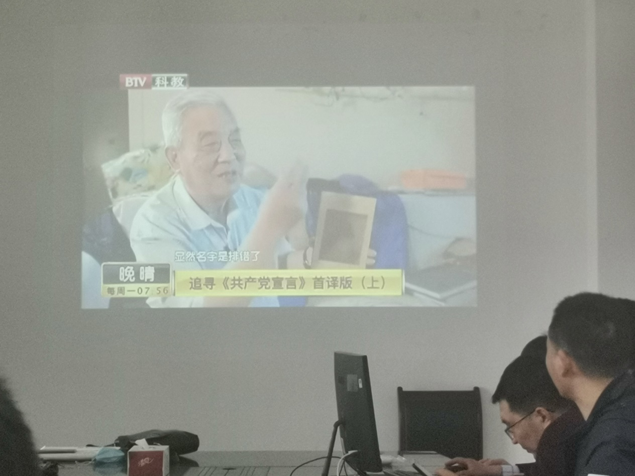 随后,在工科楼E411,值月党员张玉财主讲了题为“习近平在党史学习教育动员大会讲话内容学习”的微党课。张玉财以视频的方式播放了总书记在党史学习教育动员大会的讲话,并就习近平总书记讲话中的“四个强调,五个指出”进行了具体讲解,使全体党员更加深入领会“学史明理、学史增信、学史崇德、学史力行”的精髓。之后,张玉财带领支部党员集体观看了“党史故事石大讲述-85岁老教授余世诚讲述《共产党宣言》最早中译本发现始末”视频资料,使支部党员深入了解了《共产党宣言》最早中译本浮出水面的传奇故事。被广饶县刘集村民们称作“大胡子书”的《共产党宣言》的传承就是一曲用鲜血和生命谱写的传承革命信仰的赞歌,是进行革命传统、革命信仰教育的绝好教材。