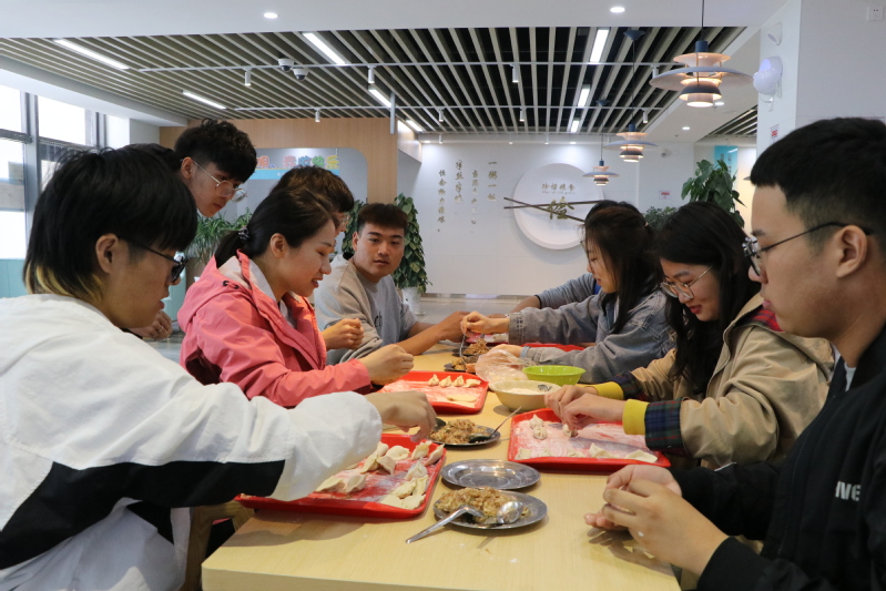 辅导员和员工一起包饺子