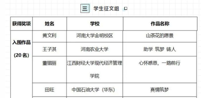 近日,第七届“助学·筑梦·铸人”主题活动暨2020年“千校万岗·精准帮扶”就业专项服务行动公布评选结果,我院2020级电气工程及其自动化专业2004班员工田旺的文字作品《真情筑梦》获评入围作品。