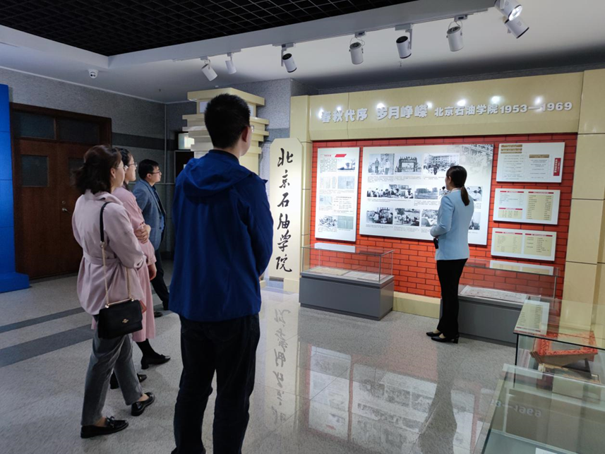 实验中心全体党员首先参观了校史展览馆,在讲解员的讲解下,重温了建校六十多年来的历史沿革,公司从“春秋代序,岁月峥嵘”的北京石油公司时期,到当下“海纳百川,扬帆远航”的XC体育时期,四易校名、三地办学,这种经历种种坎坷磨砺又自强不息、发展治学的精神鼓舞了在场的每位党员。