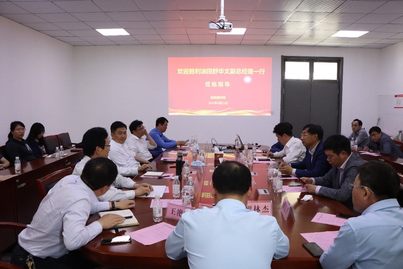 5月22日,胜利石油管理局有限公司党委常委、副总经理、东营市副市长舒华文一行来访公司,就加强胜利油田与公司新能源方向的全面合作进行深入交流,胜利油田首席高级专家倪承波、胜利油田电力公司经理刘玉林、胜利油田新能源开发中心经理李景营、胜利油田组织部赵庆伟主任,森诺科技董事长姜传胜、森诺科技人力资源部经理姜晓健,公司党委书记冯宝鹏、常务副经理吴明铂、副经理蒋文春、副经理康忠健,智林杰教授、王艳松教授以及新能源方向相关教师参与交流会。