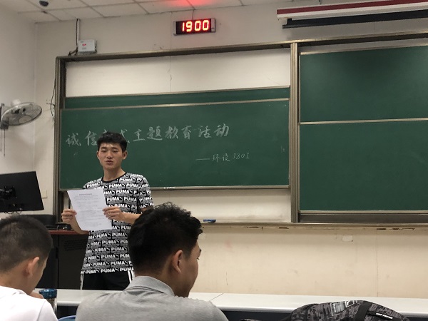 为全面贯彻落实公司考风考纪要求,营造良好诚信学风,督促员工尽快进入期末复习状态,环保设备工程1801班于6月7日在西环203开展了以“踏实诚信,从容备考”为主题的班会,环设1801班全体员工参加会议。