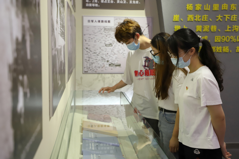 参观过程中,全体成员依次对“日寇铁蹄 践踏国土”、“中流砥柱 使命担当”、“百折不挠 浴血奋战”、“红色堡垒 铜墙铁壁”、“红色基因 代代传承”五个陈列布展进行了解学习。纪念馆讲解员通过大量的文物资料和图片,给成员们讲解杨家山里波澜壮阔的抗日历史。其中,基层党组织纷纷成立、“团练”开展抗日救亡、舍生忘死智送情报……一桩桩的历史事件让参观成员深刻感受到杨家山里人民在党的领导下表现出来的面对艰难困苦时无所畏惧的英雄气概、面对民族危亡时挺身而出、奉献一切的自我牺牲精神,面对侵略时血战到底、坚决维护民族独立和尊严的家国情怀。参观结束后,全体中共党员、中共预备党员面对党旗重温入党誓词,再次体会作为共产党员的责任感和使命感。“杨家山里的发展离不开党的正确领导,更离不开当地人民勇于开拓、自强不息的奋斗精神。我作为中共党员,更要承担起青年党员的责任与义务,强国有我!”公司员工会党支部中共党员王伟龙说道。