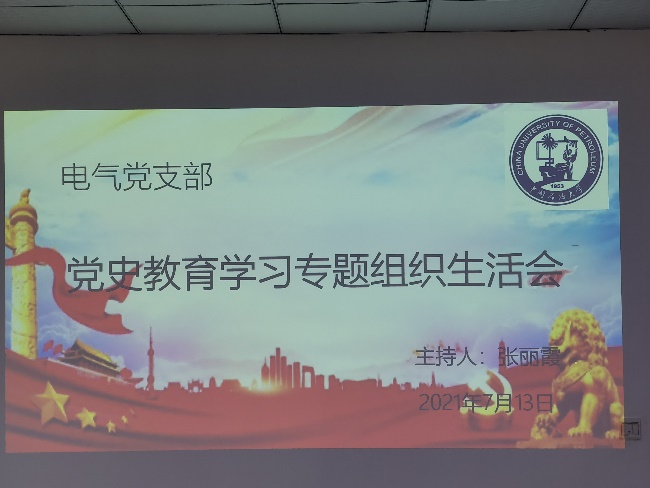 7月13日上午,电气党支部召开党史学习教育专题组织生活会,会议由支部书记张丽霞主持。
