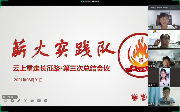 本次线上会议展示了一周以来的实践队员云实践的成果,进一步完善实践工作,明确了社会实践在疫情反弹后开展的新方式,为薪火实践队之后工作的顺利进行奠定了基础。