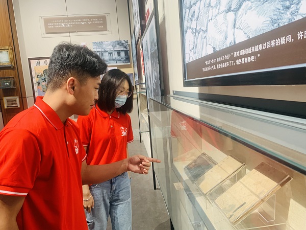 进入文化园,左侧便是刘谦初故居,故居以白灰色为主,整体看起来更加肃穆。房间里陈列着简单的家具,正中间悬挂着刘谦初的照片,除此之外,再无多余。实践队员们离开故居来到展馆门前,展示毛主席的诗句“为有牺牲多壮志,敢教日月换新天”的浮雕映入眼帘,淬炼刘谦初烈士戎马峥嵘、短暂而光辉的一生。