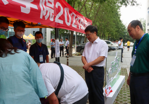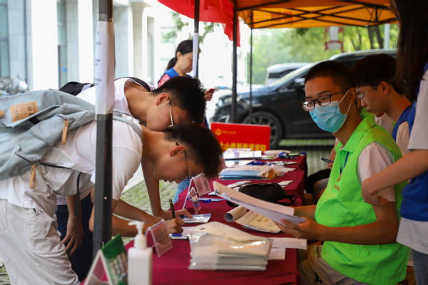 “咱们公司报到了多少同学?”在公司迎新点,王勇一行走进公司迎新报到处,观看新生报到流程,询问工作人员新生报到情况。看到公司新生报到工作正在有条不紊的开展,王勇对公司迎新工作给予肯定。