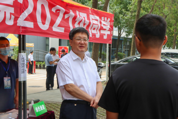 在迎新现场,王勇与新生亲切交谈,了解新生情况,遇到正在办理报到手续的新能源科学与工程专业新生刘青鑫,在得知他来自滨州,理想专业正是新能源专业,且高中时就一直向往来到石大读书时,王勇寄语刘青鑫“石大是一个更高、更广的学习平台,公司制定一系列政策保障和鼓励员工全面发展,在大学期间要努力学习专业课程,关注和了解新能源行业的发展,尽快成长成才,用所学知识回馈社会和母校。”“听了老师的嘱托,我一定会继续努力,成为更加优秀的自己!”来自新能源科学与工程专业2021级新生刘青鑫激动地说到。