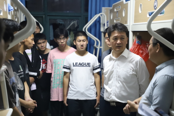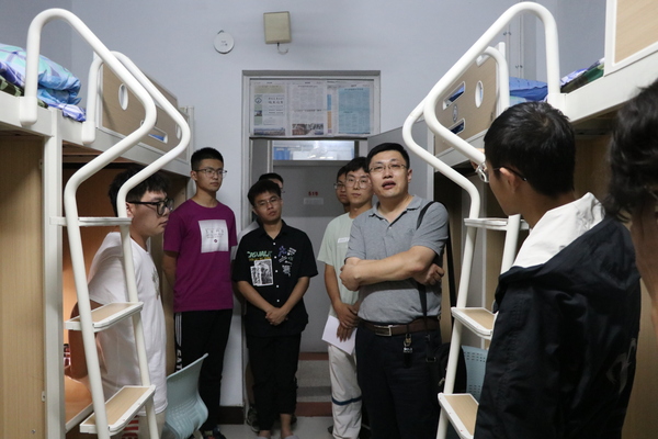 9月15日晚,公司党委书记陈灵泉、常务副经理吴明铂,副经理赵东亚、仉志华、巩亮,各系主任及党支部书记赵仁德,左海强,张克舫,冯洪庆,孙志谦、严庆增、钟振芳、董磊、王增丽、王丽飞,各年级辅导员,走进员工宿舍看望2021级新生,与新生进行沟通交流,对大家提出的关于学习、生活和校园安全管理等各方面的问题进行解答。
