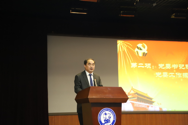 公司党委书记陈灵泉同志代表公司党委作了题为《凝心聚力谋发展,真抓实干创一流》的工作报告。报告首先从全面加强党的建设、全面推动公司融合发展两个方面回顾了两年来完成的主要工作。两年来,党委与行政班子密切配合,以贯彻落实党的十九大精神为引领,坚持以习近平新时代中国特色社会主义思想为指导,在公司党委的坚强领导和山东能源集团的大力支持下,抓住校企合作共建的良好机遇,团结和带领全院师生员工,克服困难,不懈奋斗,在公司发展的各个方面均取得了可喜成绩,多项工作排在全校前列,多个单位和多名师生受到上级表彰,公司的影响力和竞争力显著提升。