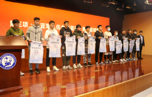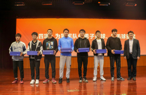 郭杰首先向大家介绍了公司在本届青年健身节上所获成绩,吴明铂与徐光辉为公司在此次青年健身节中表现优异的男排、羽毛球、男篮、女篮四个项目的运动团队颁发奖品。郭杰对公司在此次青年健身节成绩进行总结与分析,肯定公司运动健儿顽强拼搏、吃苦耐劳的优秀品质,并鼓励更多员工参与体育运动,争取明年健身节再创佳绩。