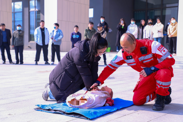 “原来心肺复苏的每一步都有这么严格的要求,学到了,学到了。”上午9点30分,随着防火警报声的拉响,古镇口校区消防应急演练正式开始,在新能源大厦学习工作的全体师生按照规划的疏散路线,在疏散引导员的指示下迅速有序撤离教室,集中疏散至新能源大厦东门空地,整个疏散过程迅速而有序。员工集结完毕后,保卫处科长孙乐民为现场师生讲解消防安全常识,示范灭火器的操作方法,现场师生进行了灭火器的实际操作,对模拟火场进行扑灭。青岛红十字搜救队急救员于涛为现场师生讲授心肺复苏急救术以及人工呼吸的正确步骤,另外简单介绍了AED除颤仪的用途及操作流程,随后于涛对尝试体验急救术的员工进行了一对一的动作纠正及指导。此次消防应急演练通过理论与实践相结合的方式,切实培养了全体师生的整体急救安全技能,为做好火灾的预防工作奠定基础。