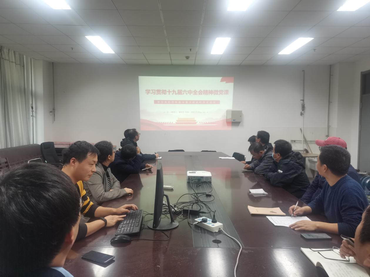 最后,作为值月党员解学方讲解了“党的十九届六中全会精神”微党课。此次全会最重要的成果是审议通过了《中共中央关于党的百年奋斗重大成就和历史经验的决议》,强调“两个确立”,对新时代党和国家事业发展、对推进中华民族伟大复兴历史进程具有决定性意义。同时提出了“十个坚持”来总结党百年奋斗的历史经验,即:即坚持党的领导,坚持人民至上,坚持理论创新,坚持独立自主,坚持中国道路,坚持胸怀天下,坚持开拓创新,坚持敢于斗争,坚持统一战线,坚持自我革命。讲解结束后,解学方和王宗明两位同志进行了值月党员交接。